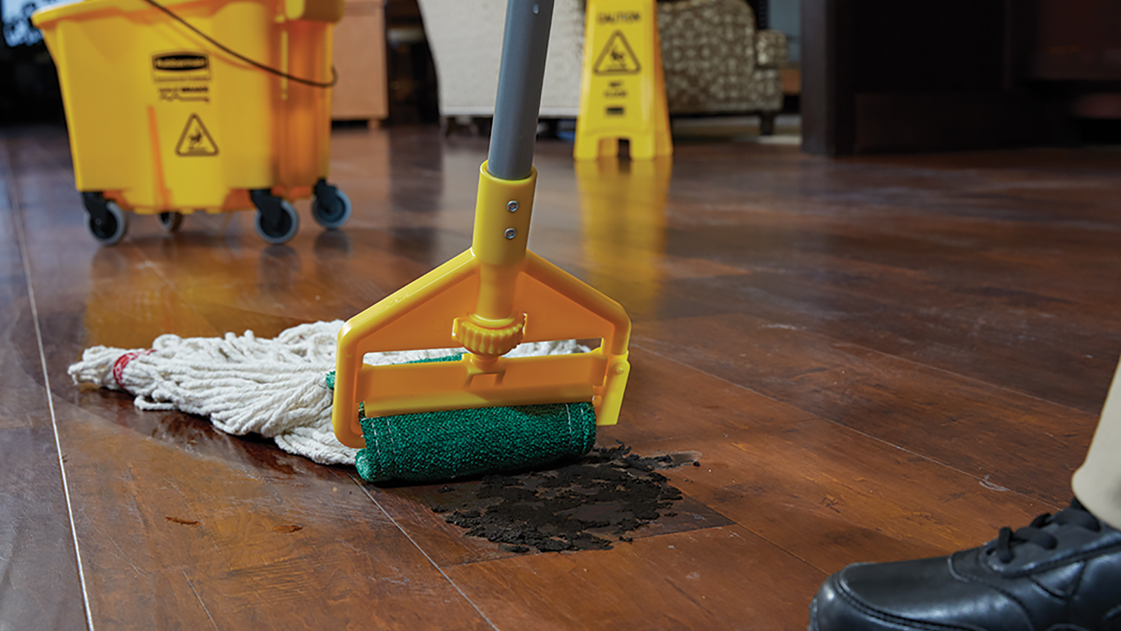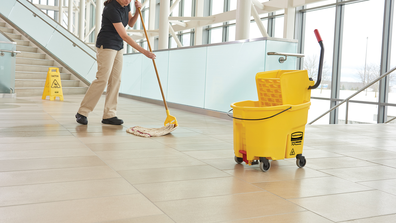 WaveBrake® patented bucket and baffle design reduces splashing for more efficient, safer mopping.