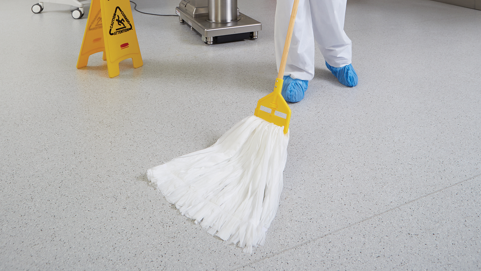 The Disposable Mop removes 3X more dirt and grease than Rubbermaid Commercial Products economy cotton mops.