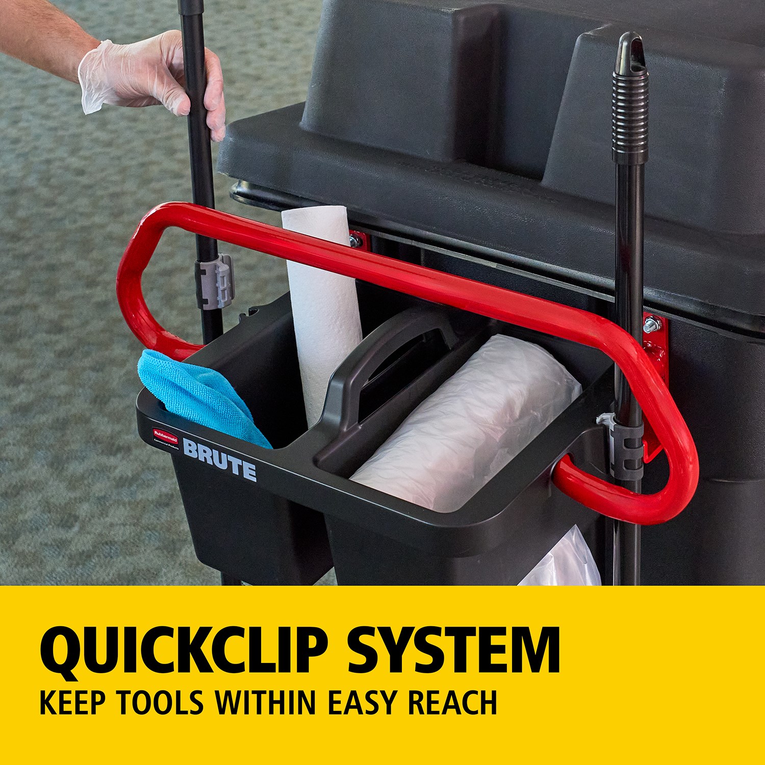 This retrofittable ergonomic handle supports day-to-day tasks and features a removable caddy for easy dumping. The caddy includes two integrated stick good holders for quick tool access and a built-in trash bag dispenser to keep supplies organized on the go. Designed with user comfort in mind, the handle helps reduce strain while maintaining control during transport. Ideal for busy shifts, it keeps essential tools and materials within reach to maximize efficiency.